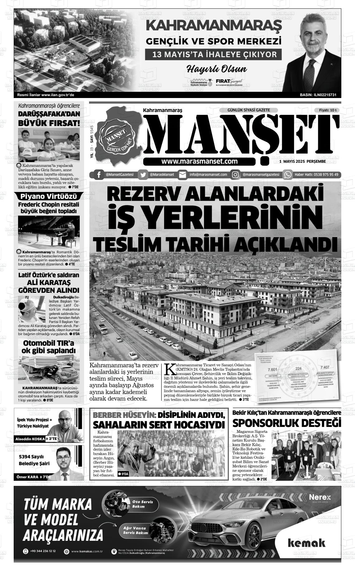 KAHRAMANMARAŞ MANŞET